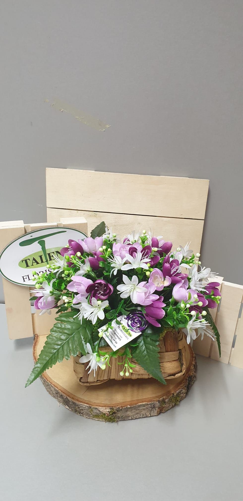 Base cuadrada de mimbre decorada con flores de tela