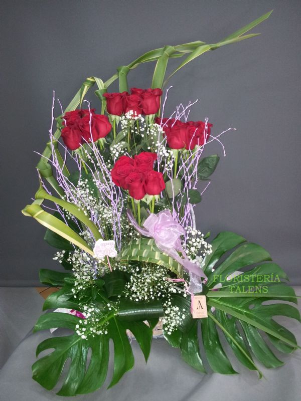 Rosas colombianas en agrupación paralela y verdes de complemento.