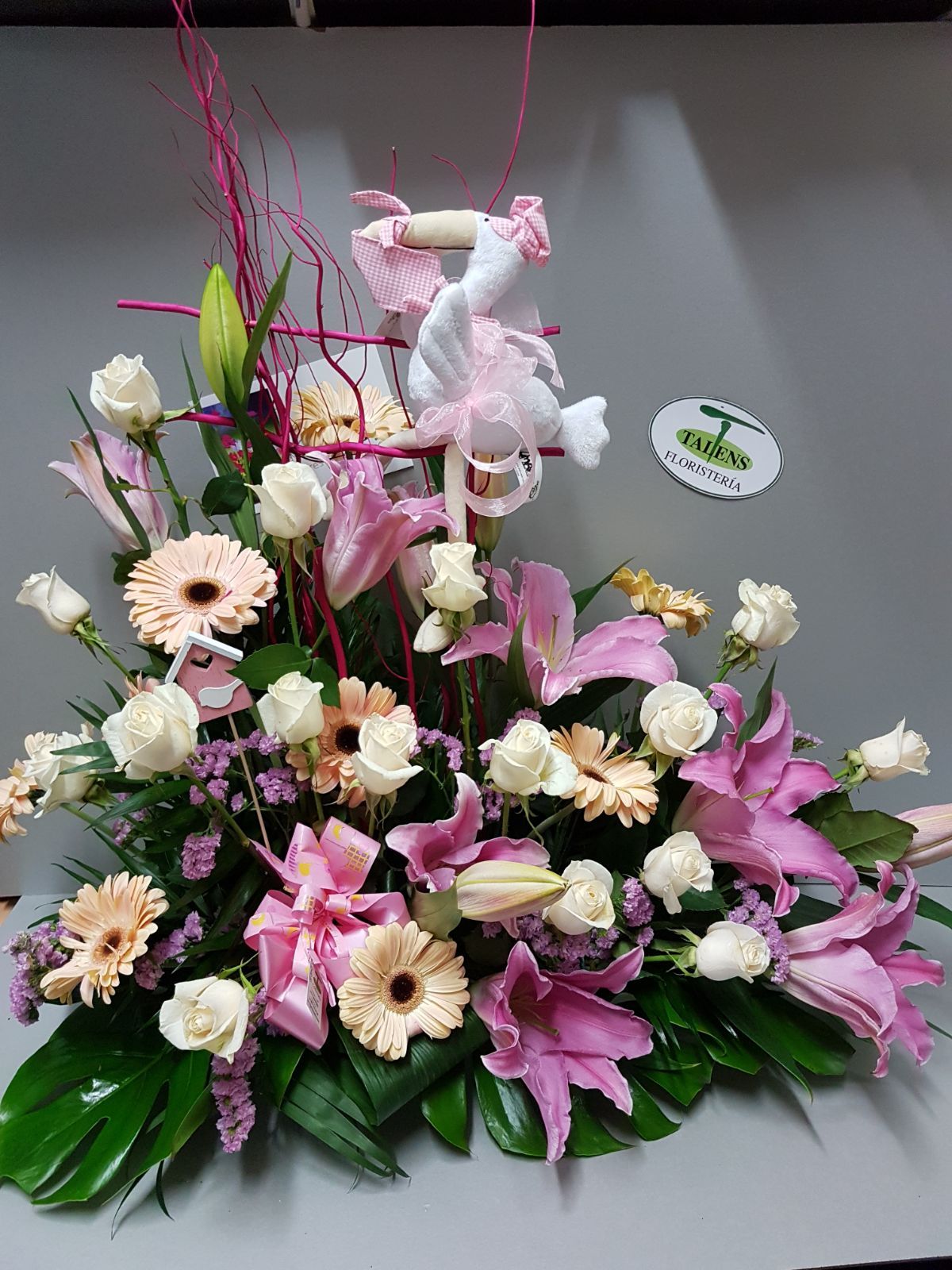 Con liliums, Gerberas, Rosas y verdes complementarios