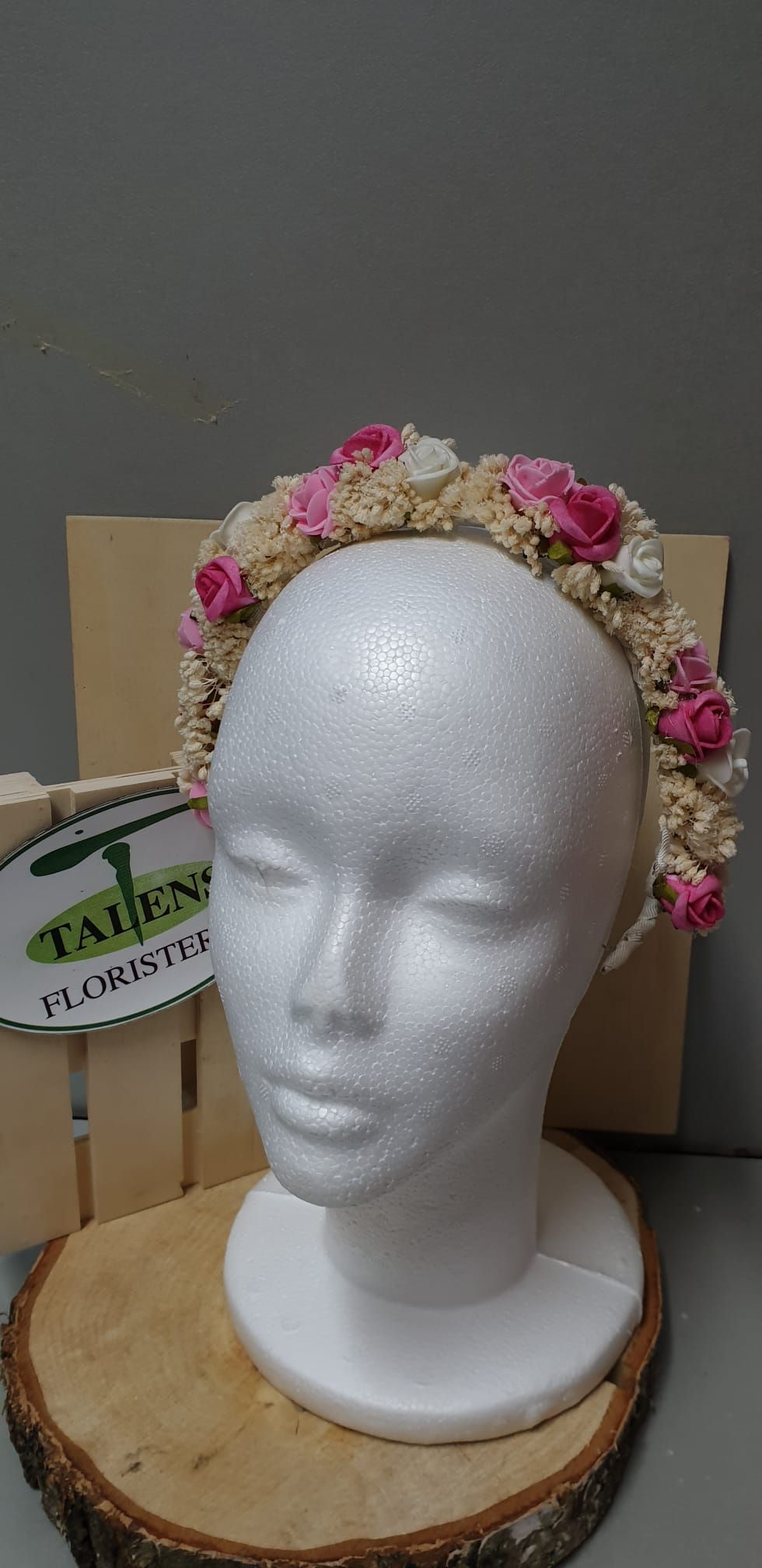 Coronita decorada con flor de tela. Personalizada