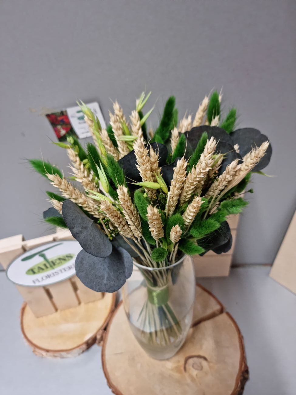 Decorado con flores variadas en tonos amarillos ( Jarrón de cristal no incluido )
