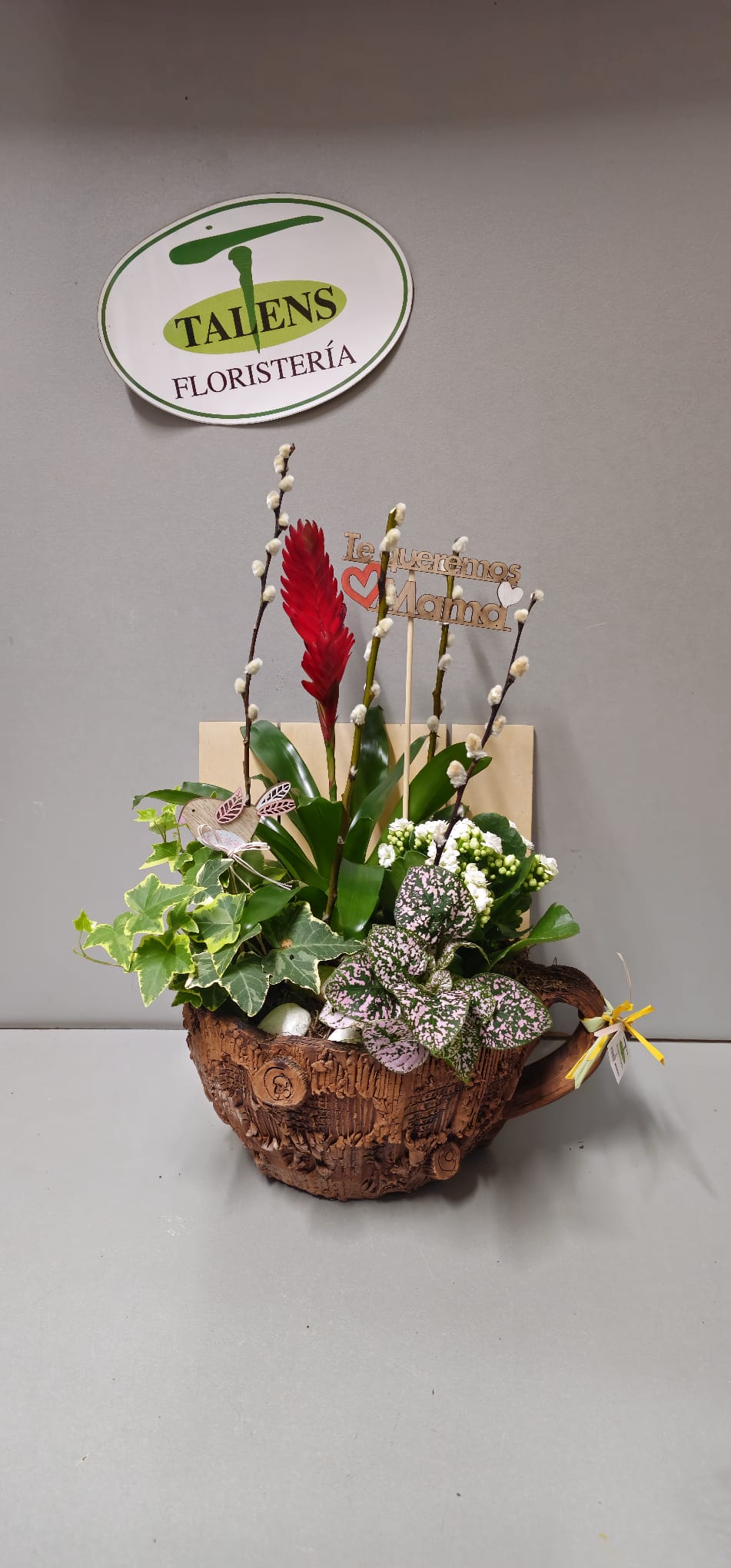 Tazón decorado con plantas variadas.