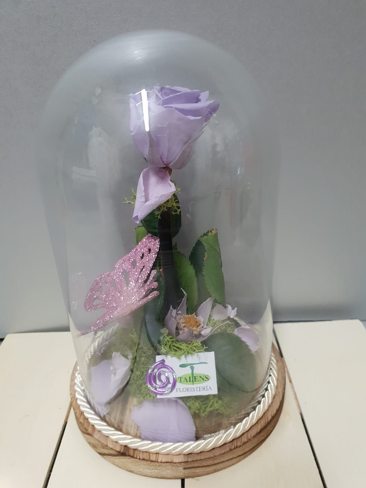 Urna con rosa preservada (Color a elegir)